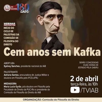 No livro, o personagem Josef K. é detido e luta para descobrir do que é acusado, quem o acusa e com base em qual lei. “O processo possibilita a todos nós que atuamos na área jurídica indagar sobre o papel do processo judicial na vida do ser humano, como ser social, integrante de um grupo e sujeito às leis que regulam seu povo. O processo, como instrumento do Direito, deve ser elaborado com respeito às regras estabelecidas e sempre de forma conscienciosa para o cumprimento da sua finalidade. Quando isso não acontece, ele se transforma em mecanismo arbitrário cujo resultado não é diferente de outras formas de uso da força”, disse Santos. A abertura do webinar foi realizada pela presidente da Comissão de Filosofia do Direito do IAB, Maria Lucia Gyrão, que destacou a importância de Kafka, que era advogado, para os estudos na área: “Ele deve ser lido pelos estudantes e profissionais do Direito, juízes, desembargadores e todos que se dedicam ao Direito e à Justiça”. De acordo com a advogada , o livro O processo é extremamente atual. “Temos hoje pessoas que sofrem denunciação caluniosa e amargam falta de transparência e rigor no processo, que deveria assegurar as garantias constitucionais. É preciso que não só a sociedade, mas também os operadores do Direito pensem em tudo isso”. Adriana Santos afirmou que o processo penal, como retratado por Kafka, caracteriza a instrumentalização abusiva da força em nome do Estado, deixando o cidadão indefeso. “Ele discute diversas situações pelas quais podem passar os que são submetidos à Justiça sem ter a quem recorrer. Na verdade, Kafka tratou do calcanhar de Aquiles da Justiça, que é a denunciação caluniosa. Com a corrupção do sistema, descobrir se o sujeito está mentindo não é fácil, mas o foco da questão é o processo e os seus efeitos nas vidas das pessoas”, explicou a procuradora.Segundo a palestrante, a importância da obra de Kafka é demonstrada no cotidiano da Justiça. Mesmo décadas após a sua morte, o Supremo Tribunal Federal (STF) começou a usar o termo “kafkiano” para se referir a estruturas de um processo. “A acusada estava presa em São Paulo e respondia por outros crimes no Rio de Janeiro. Ela não teve acesso a um advogado. A defensoria pedia, mas o juiz não permitia e o processo todo foi feito sem que ela tivesse o verdadeiro acesso à Justiça. O STF usou esse termo porque justamente foi negado a ela todo tipo de direito e garantias”, contou.